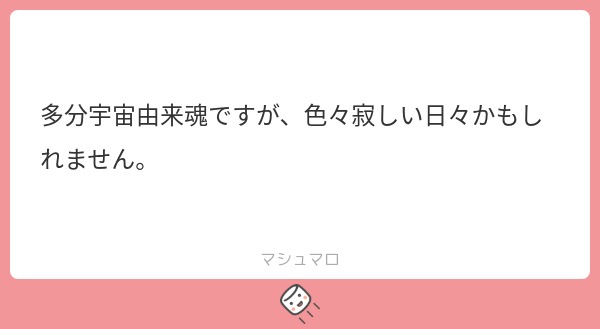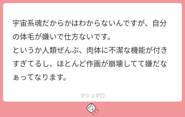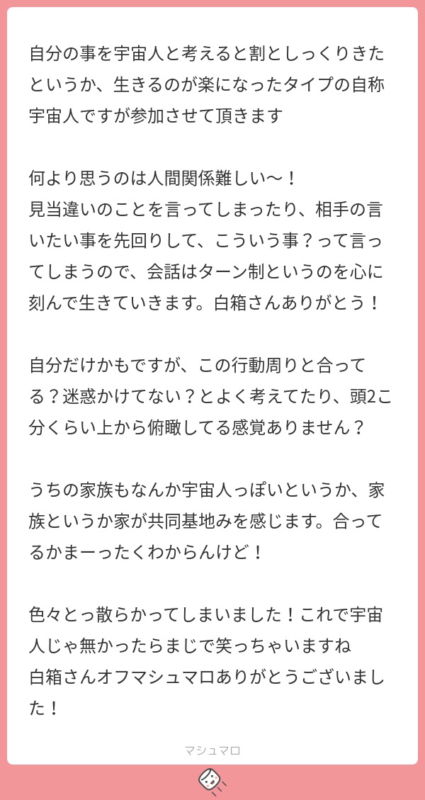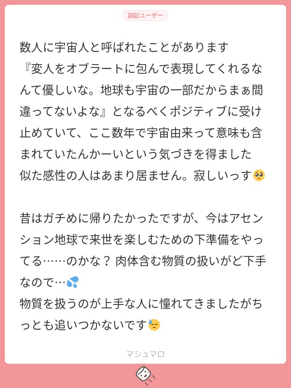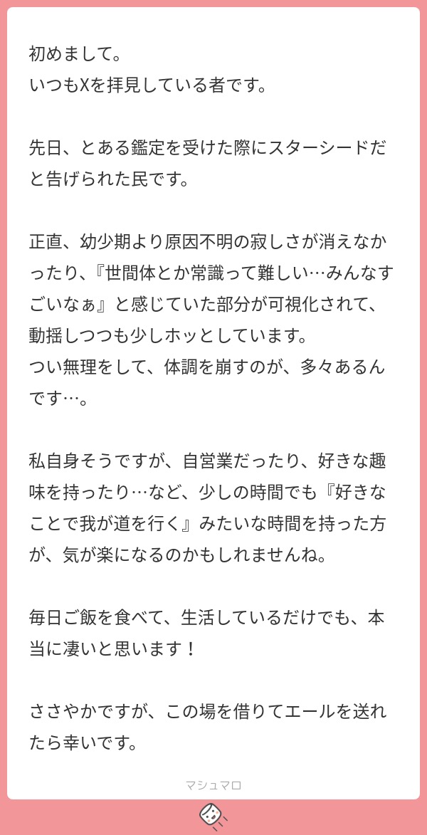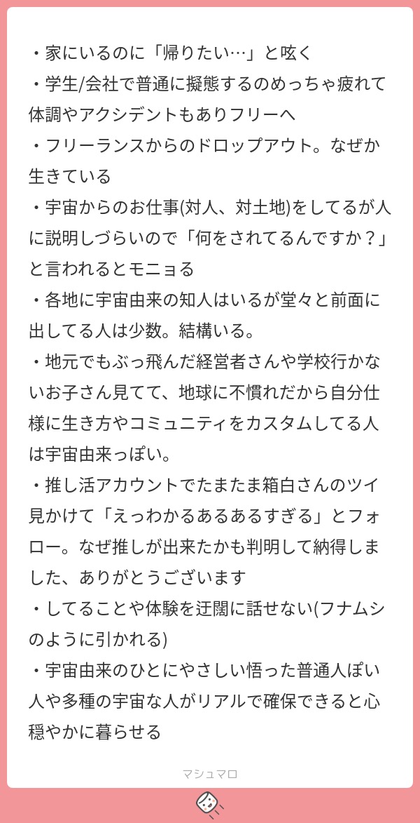 あくまで、これを見ている宇宙由来さんが「自分だけじゃなかった、よかった」とちょっとだけ安心できるように、というのが主旨です。