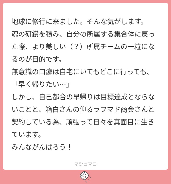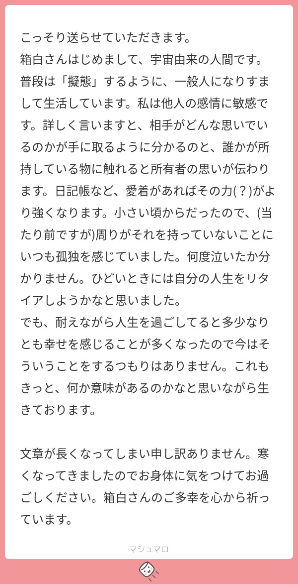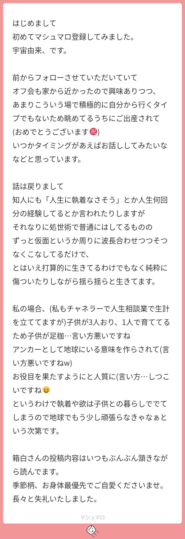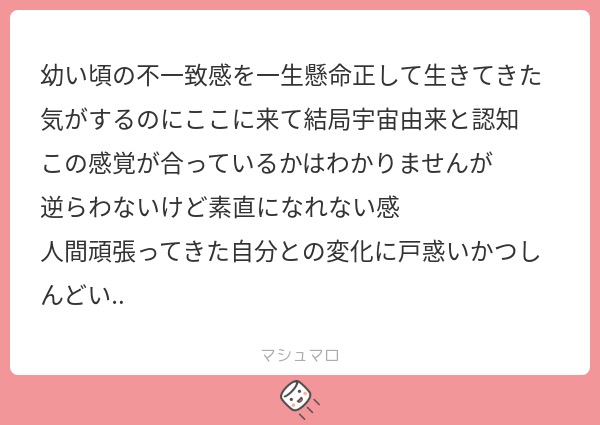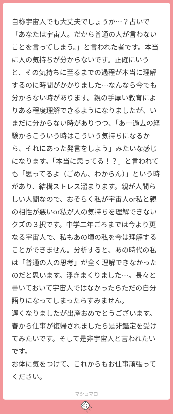 あくまで、これを見ている宇宙由来さんが「自分だけじゃなかった、よかった」とちょっとだけ安心できるように、というのが主旨です。