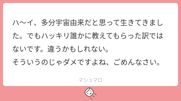 これだけだと自分の魂が宇宙由来かどうかはわかりませんが、よくよく考えてみると地球だって宇宙の一部です。つまり地球人も宇宙人の一種。