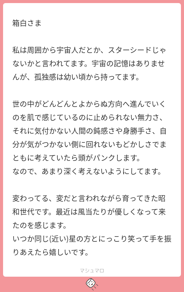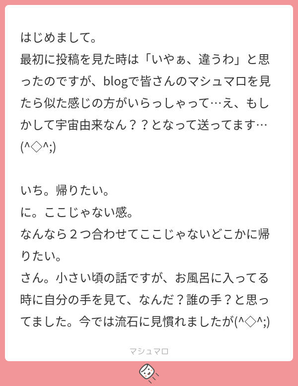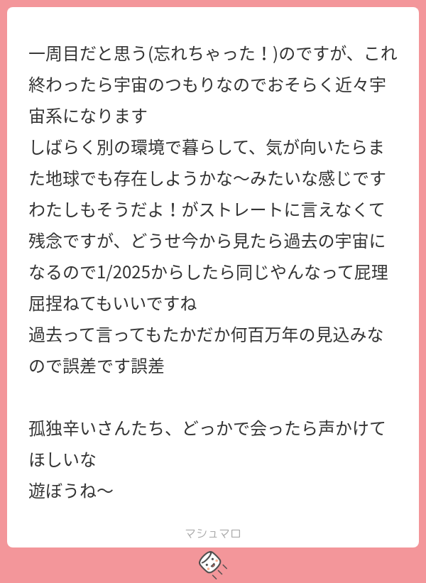 続編!宇宙由来の魂の当事者会マシュマロ