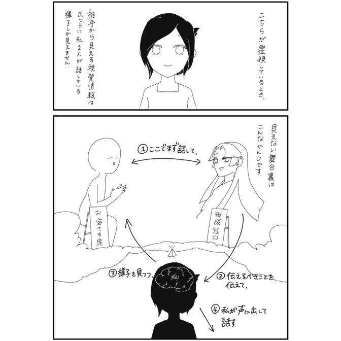 『霊視カウンセリングの舞台裏』 https://note.com/white_cube_1_/n/n43622c72e63e 霊視をする際こんなことをしていますよ〜と霊視する側目線で書いてます。